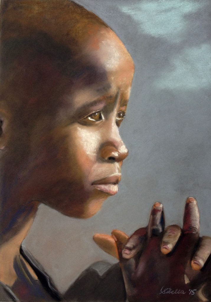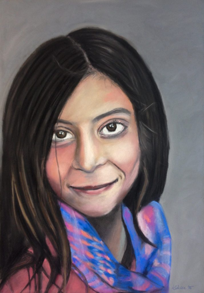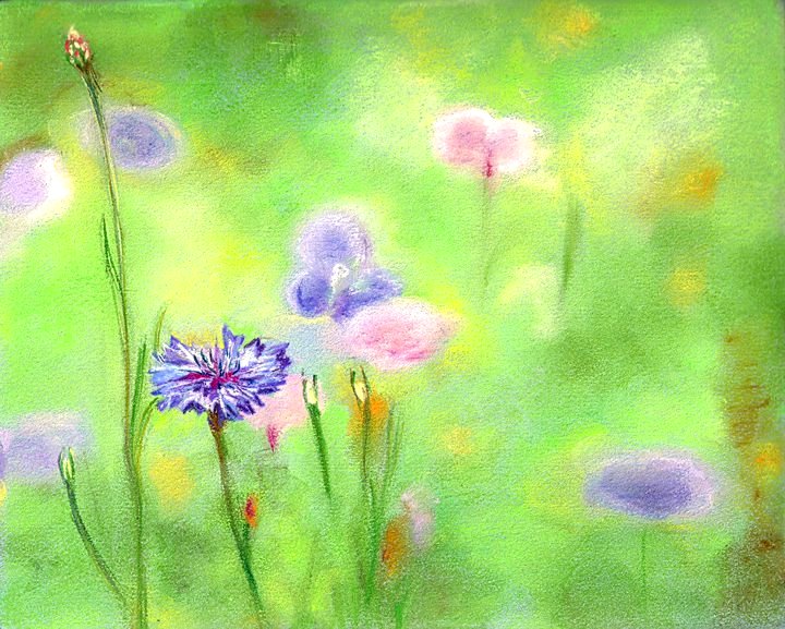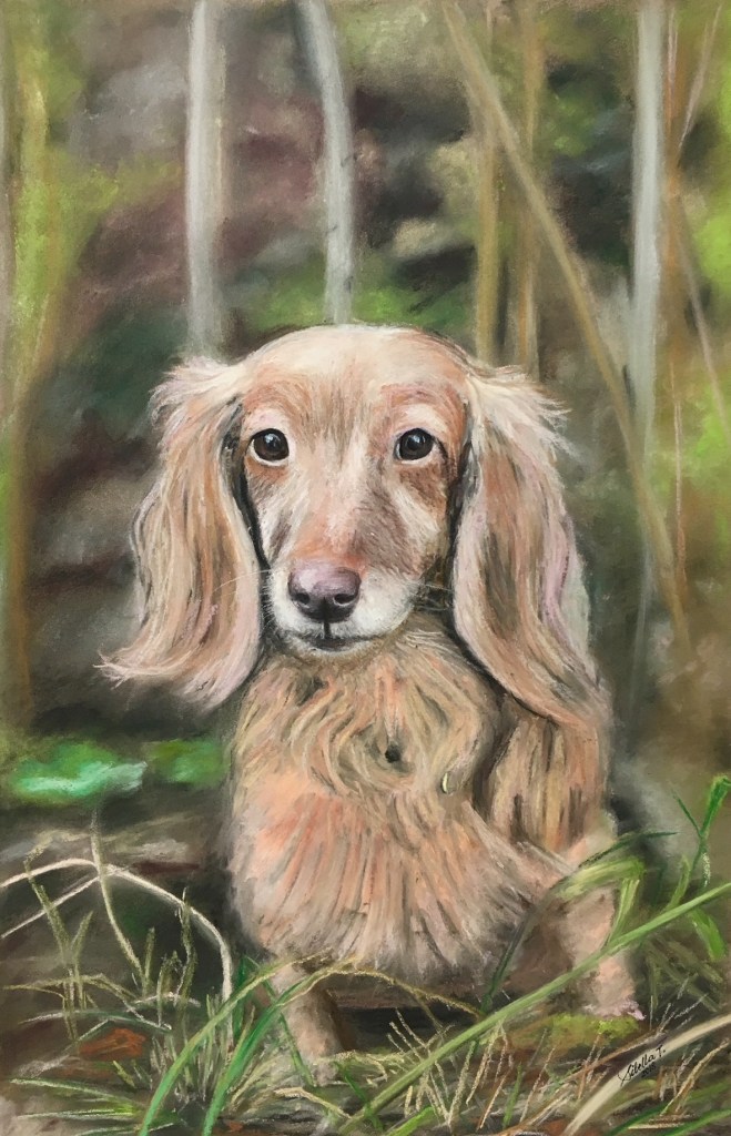 The medium of soft pastel does not refer to pastel (pale) colors. In contrary, pastels are made with a pure powdered pigment which is ground to a paste. The paste is mixed with a small amount of gum binder and then rolled into sticks and dried. No other medium produces such vibrant colors as pastel. Pastel is wonderful to work with and one my favorite mediums!